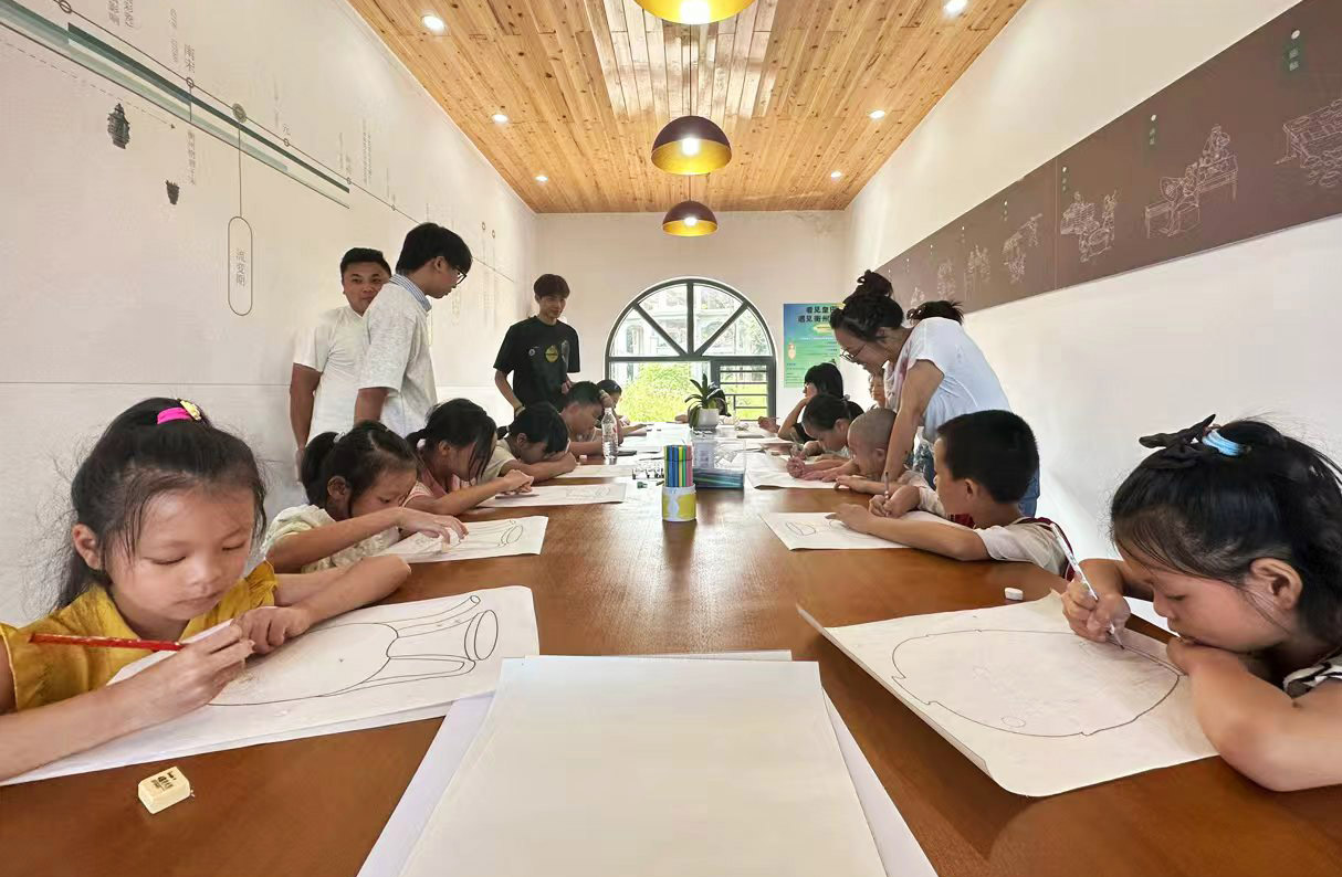 8月15日,一场“看见皇田,遇见衡州窑”美育活动在皇田村衡州窑文化体验中心拉开序幕。南华大学松霖建筑与设计艺术学院的大学生志愿者引导孩子们触摸陶片、认识器型,并以传统陶器为画布,用五彩画笔描绘家乡山水、田园风貌与生活场景,为衡州窑文化延伸生命活力。
